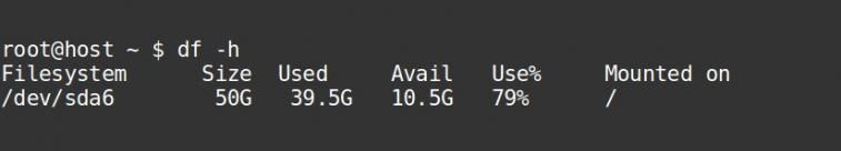 Our engineers check the disk usage status in the server using the command ‘df -h’.